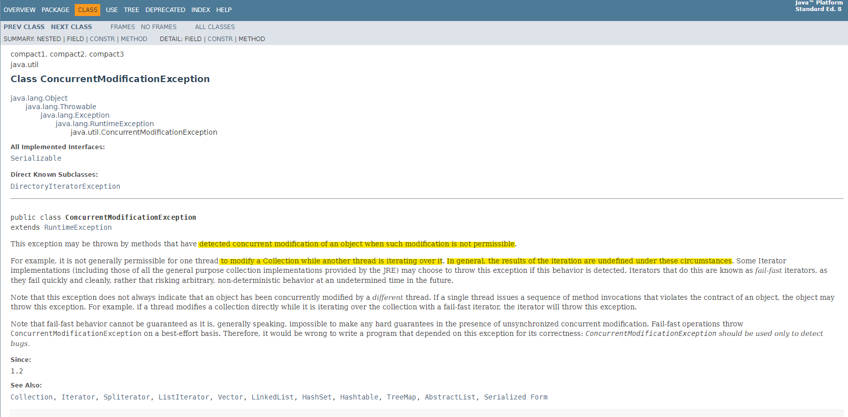 이번엔 ConcurrentModificationException 에러를 검색해보았다.그 결과, 수정이 불가능한 상황에서 object에 수정이 일어날 때 나타나는 오류라고 한다.다른 스레드에서 iterating 중일 때 Collection을 수정할 때 수정하면 나타나는 오류라고 적혀 있다.